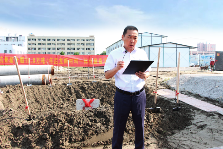 2022年7月12日,杭州聚合順新材料股份有限公司舉行10.4萬噸/年(項目總備案16.8萬噸)尼龍新材料一體化項目奠基儀式,董事長傅昌寶先生、總裁毛新華先生及施工方、監理方代表等共同出席。